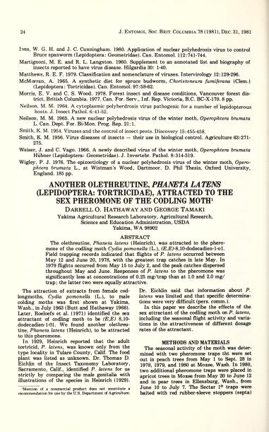 Published in Journal of the Entomological Society of British Columbia, in 1981, in volume 78, pages 24-27