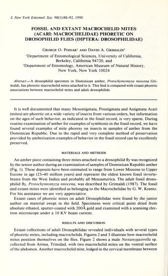 Published in Journal of The New York Entomological Society, in 1990, in volume 98, issue 1, pages 88-92