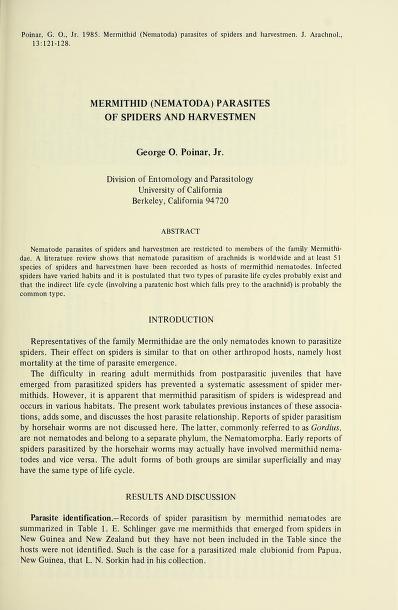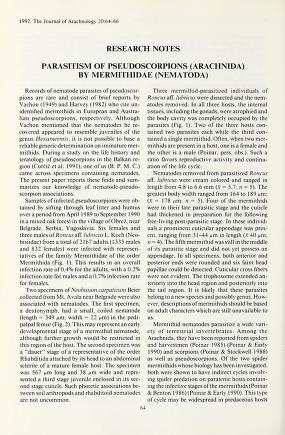 Published in Journal of Arachnology, in 1992, in volume 20, issue 3, pages 64-66