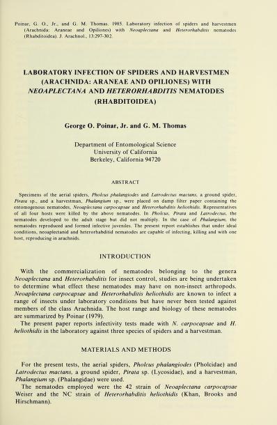 Published in Journal of Arachnology, in 1985, in volume 13, issue 3, pages 297-302