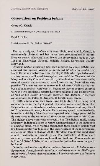 Published in Journal of Research on the Lepidoptera, in 1987, in volume 25, issue 2, pages 146-147