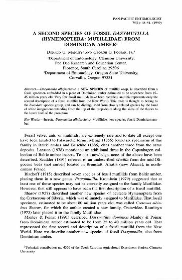 Published in Pan-Pacific Entomologist, in 1999, in volume 75, issue 1, pages 48-51