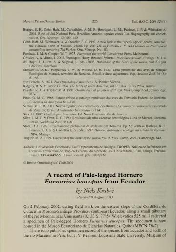 Published in Bulletin of The British Ornithologists' Club, in 2004, in volume 124, pages 226-227