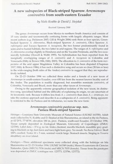 Published in Bulletin of the British Ornithologists' Club, in 2008, in volume 128, issue 2, pages 126-130