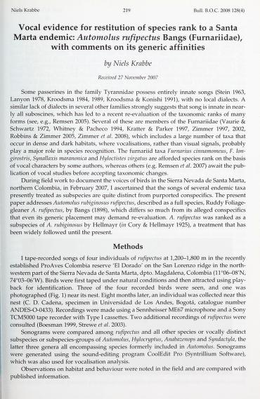 Published in Bulletin of The British Ornithologists' Club, in 2008, in volume 128, issue 4, pages 219-227