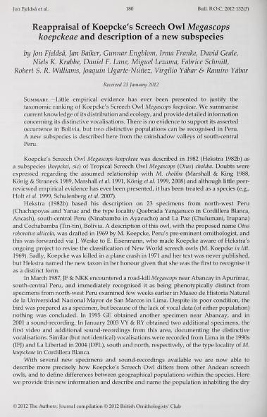 Published in Bulletin of the British Ornithologists' Club, in 2012, in volume 132, issue 3, pages 180-193