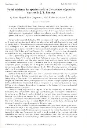 Published in Bulletin of the British Ornithologists' Club, in 2014, in volume 134, issue 2, pages 145-154