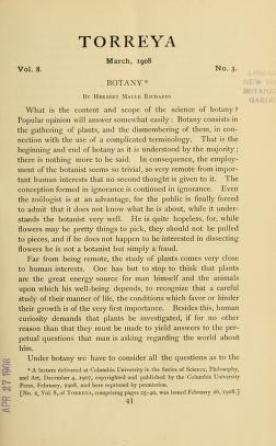 Published in Torreya, in 1908, in volume 8, issue 3, pages 41-50