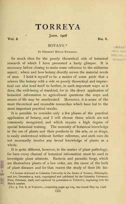 Published in Torreya, in 1908, in volume 8, issue 6, pages 125-130