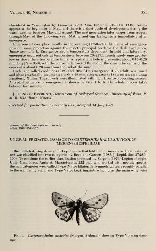 Published in Journal of The Lepidopterists' Society, in 1986, in volume 40, pages 351-352