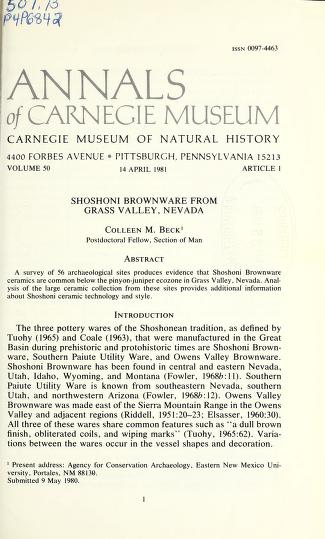 Published in Annals of the Carnegie Museum, in 1981, in volume 50, pages 1-29