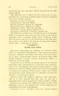 Published in Nautilus, in 1961, in volume 75, pages 84