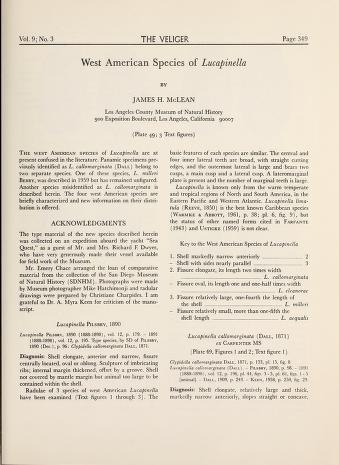 Published in Veliger, in 1967, in volume 9, pages 349-352