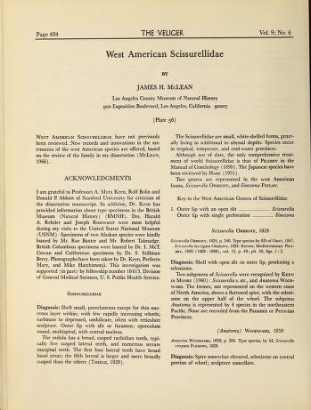 Published in Veliger, in 1967, in volume 9, pages 404-410