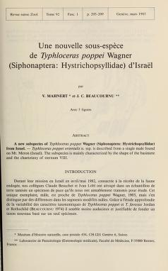 Published in Revue Suisse De Zoologie, in 1985, in volume 92, pages 205-209