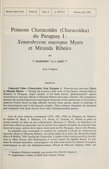 Published in Revue Suisse De Zoologie, in 1984, in volume 91, pages 497-513