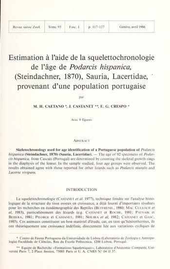 Published in Revue Suisse De Zoologie, in 1986, in volume 93, pages 117-127
