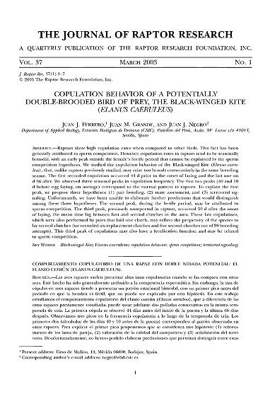 Published in Journal of Raptor Research, in 2003, in volume 37, issue 1, pages 1-7