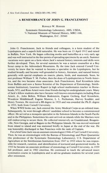 Published in Journal of The New York Entomological Society, in 1992, in volume 100, issue 2, pages 185-190