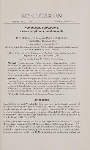 Published in Mycotaxon, in 2005, in volume 91, pages 323-332