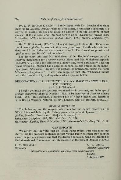 Published in Bull. Zool. Nom., in 1970, in volume 26, pages 224