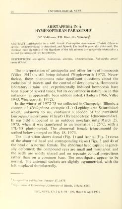 Published in Entomological News, in 1976, in volume 87, pages 98-100