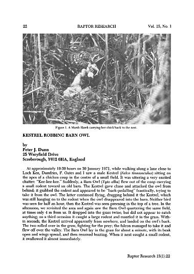 Published in Raptor Research, in 1981, in volume 15, issue 1, pages 22