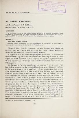 Published in Journal of South African Botany, in 1971, in volume 37, issue 3, pages 143-146