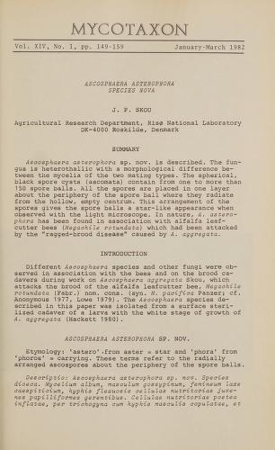 Published in Mycotaxon, in 1982, in volume 14, issue 1, pages 149-159