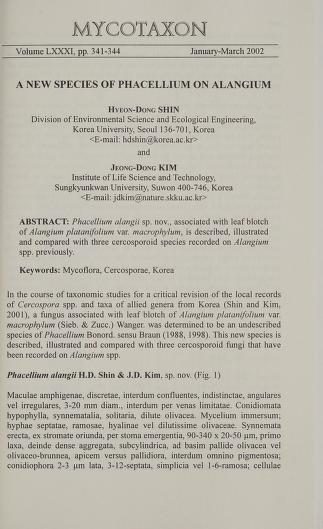 Published in Mycotaxon, in 2002, in volume 81, pages 341-344