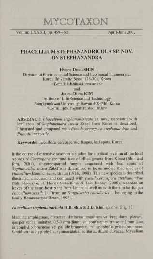 Published in Mycotaxon, in 2002, in volume 82, pages 459-462