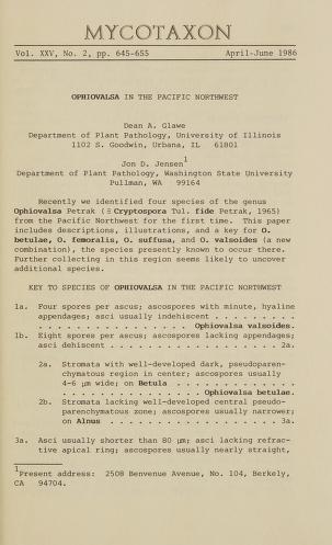 Published in Mycotaxon, in 1986, in volume 25, issue 2, pages 645-655