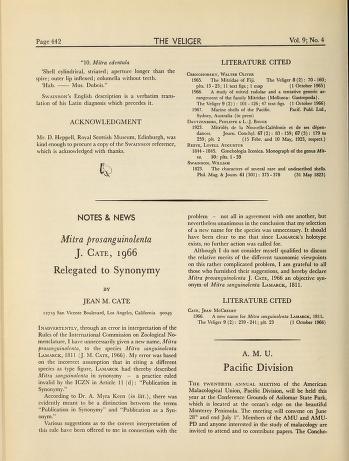 Published in Veliger, in 1967, in volume 9, pages 442