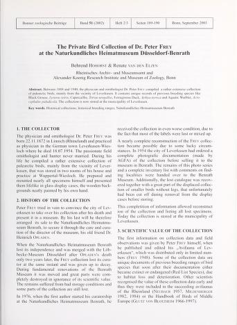 The private bird collection of Dr. Peter Frey at the Naturkundliches Heimatmuseum Düsseldorf-Benrath