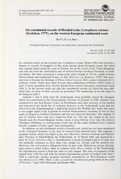 Published in Zeitschrift für Säugetierkunde, in 1997, in volume 62, pages 182-186