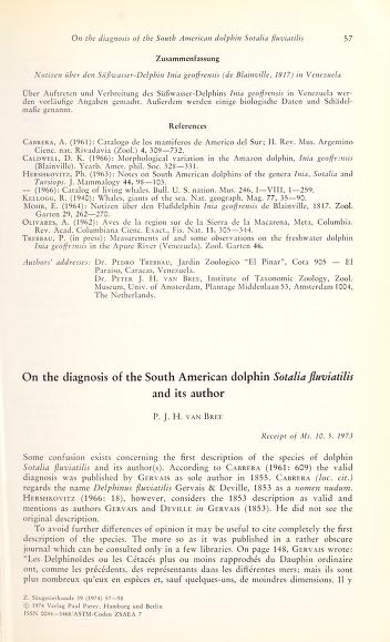 Published in Zeitschrift für Säugetierkunde, in 1973, in volume 39, pages 57-58