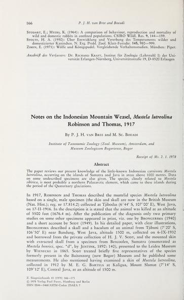 Published in Zeitschrift für Säugetierkunde, in 1967, in volume 33, pages 383-384