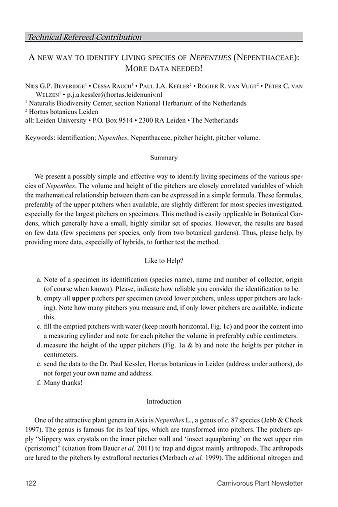 Published in Carnivorous plant newsletter, in 2013, in volume 42, issue 4, pages 122-128