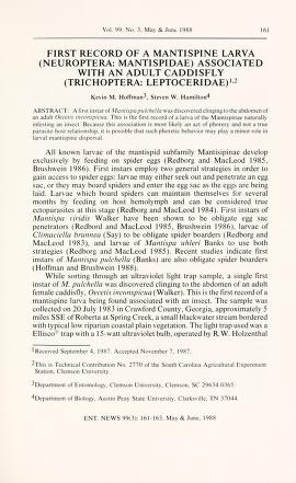 Published in Entomological News, Philadelphia, in 1988, in volume 99, pages 161-163