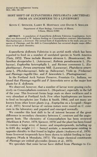 Published in Journal of The Lepidopterists' Society, in 1984, in volume 38, pages 192-193