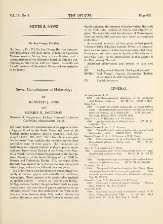 Published in Veliger, in 1972, in volume 14, pages 437-440