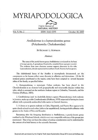 Published in Myriapodologica, in 2007, in volume 9, issue 2, pages 3-8