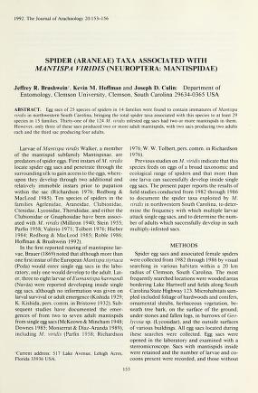 Published in Journal of Arachnology, in 1992, in volume 20, issue 3, pages 153-156