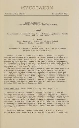 Published in Mycotaxon, in 1992, in volume 43, pages 289-293