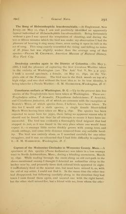 Published in The Auk, in 1890, in volume 7, pages 291