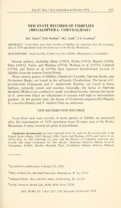 Published in Entomological News, Philadelphia, in 1976, in volume 87, pages 223-228