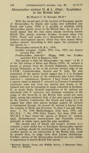 Published in Entomologist's Record and Journal of Variation, in 1981, in volume 93, issue 2, pages 25-27