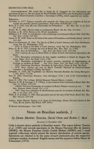 Published in Bulletin of The British Ornithologists' Club, in 1986, in volume 106, pages 74-77
