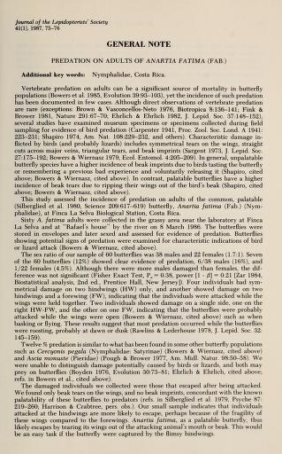 Published in Journal of The Lepidopterists' Society, in 1987, in volume 41, pages 75-76