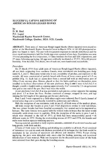 Published in Raptor Research, in 1976, in volume 10, issue 1, pages 1-8